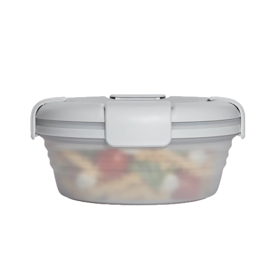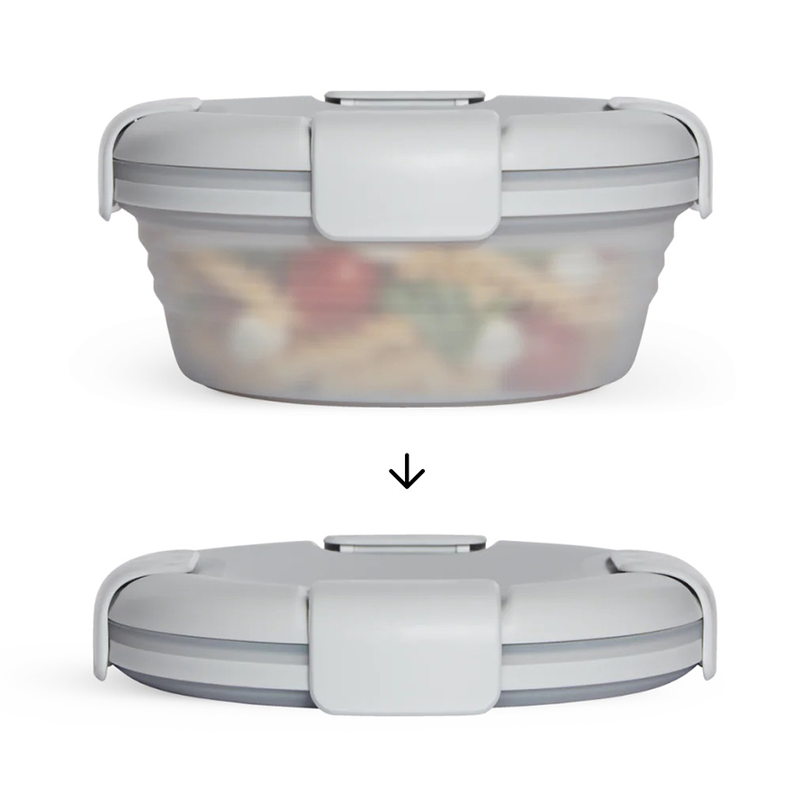 Складной и многоразовый. Крышка с фиксаторами закрывается герметично, поэтому ваш обед не вытечет из ланч-бокса. Удобно брать с собой готовое блюдо или просто перекусы. Подходит для использования в микроволновой печи, поэтому вам не составит труда разогреть ваш обед, не перекладывая его в тарелку. А после того, как поели, вы легко сложите его. В сложенном виде он занимает мало места и его можно положить в сумочку, рюкзак.