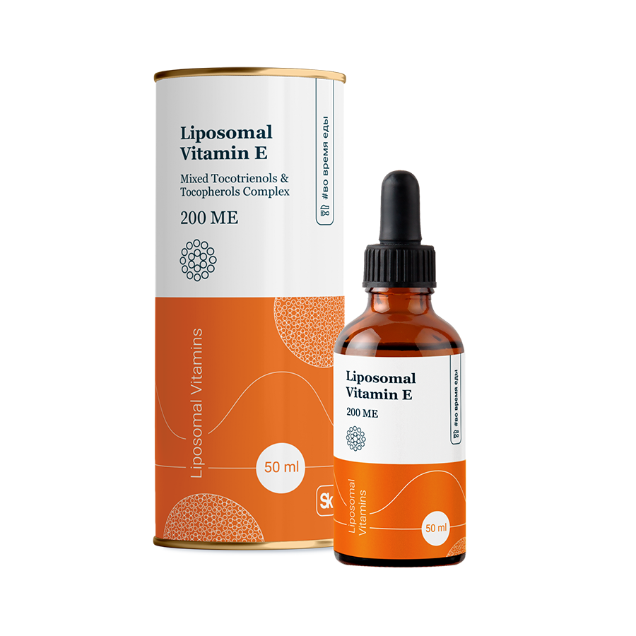 Липосомальный витамин Е — инновационный комплекс токотриенолов и токоферолов (все 8 природных изомеров) для эффективной комплексной поддержки и здоровья организма Поддерживает здоровье сердца и сосудов, гладкой мускулатуры миокарда, нормализует уровень холестерина и регулирует липидный профиль; поддерживает систему кровообращения и снижает риск развития сердечно-сосудистых заболеваний. Увлажняет, питает, повышает эластичность и общий тонус кожи, разглаживает морщины и замедляет процессы старения; устраняет внешние кожные дефекты. Блокирует действие свободных радикалов, снижает уровень оксидативного стресса, поддерживает здоровье мозга, глаз и работу иммунной системы; обеспечивает мощную антиоксидантную защиту: защищает клетки от злокачественного перерождения.