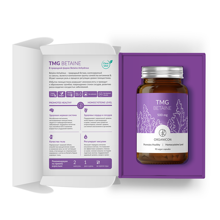 Главная / Здоровье / БАДы / Природный бетаин TMG Betaine Organicon Liposomal Vitamins